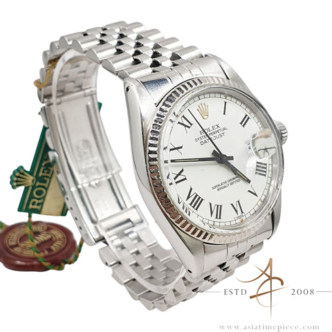 1984 Rolex Datejust 16014 White Buckley Dial Vintage Watch with Certificate & Box