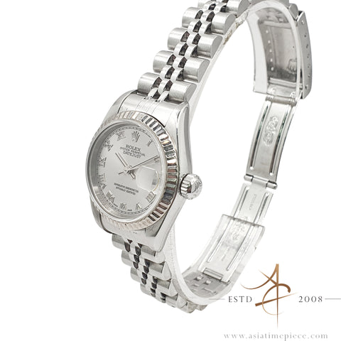 Dial: Silver dial with applied Roman hour markers. Date aperture at 3 o'clock