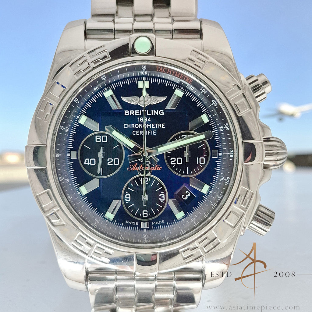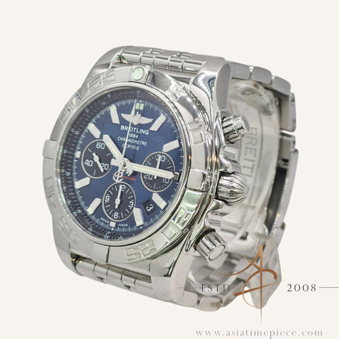 Breitling Chronomat 44 AB0110 / A011C89PA Blue Dial Automatic Chronograph Steel Bracelet Box Set (2009)