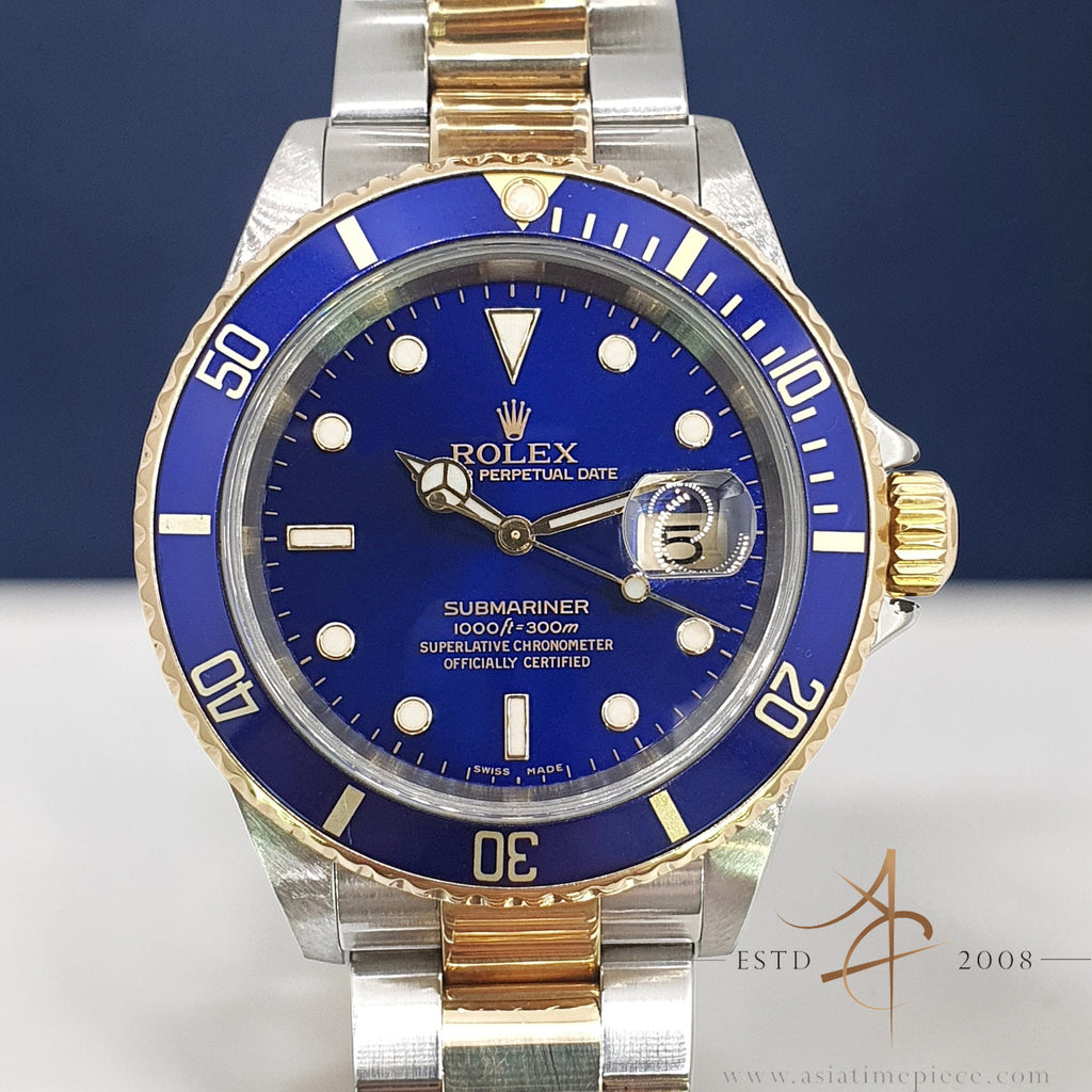 Dial: sunburst blue dial. Date aperture at 3