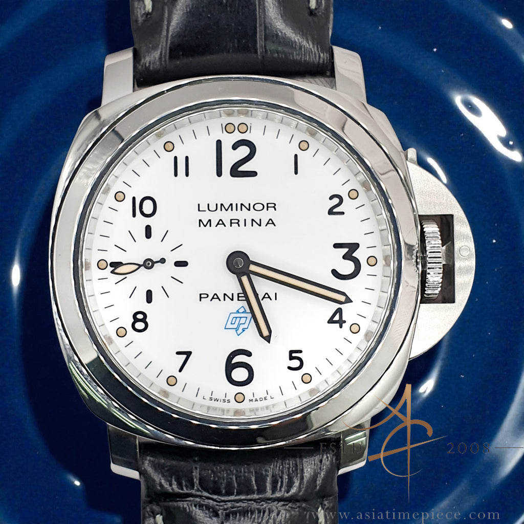 Dial: White with Arabic numerals and luminous dots; features the blue "OP" logo and a small seconds sub-dial at 9 o'clock3